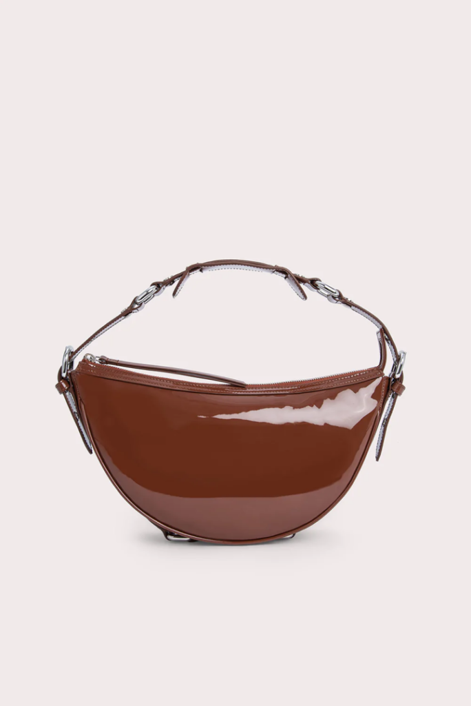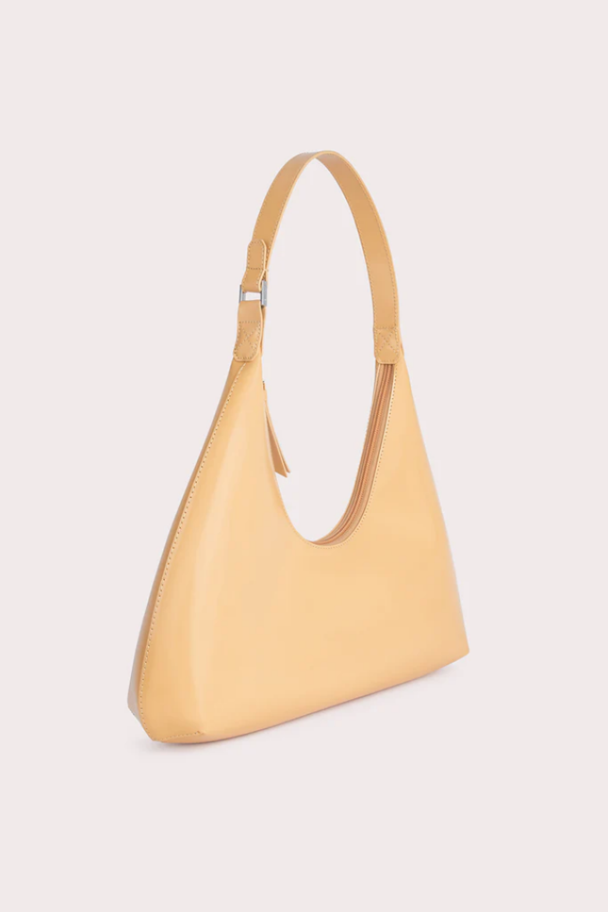 Amber手袋的结构设计彰显时尚曲线,是BY FAR标志性的单肩包款式之一,由半漆皮牛皮制成,在包面做出细节修饰,包括拉链开合、棉质衬里和徽标雕刻搭扣。有多种颜色可选:米色、深棕色、浅黄、黑色、灰色等。